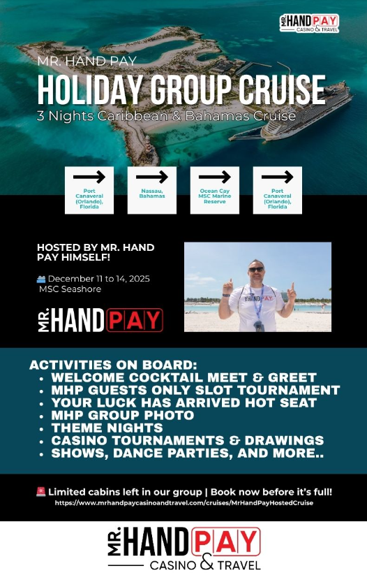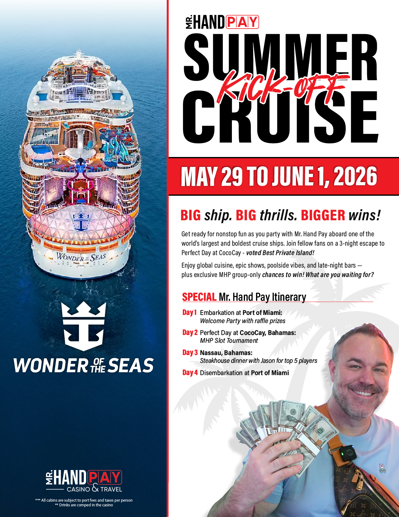 Gourmet Dining Show Tickets Flights Cruises Luxury Stays Free play for HAND PAYS Comped.